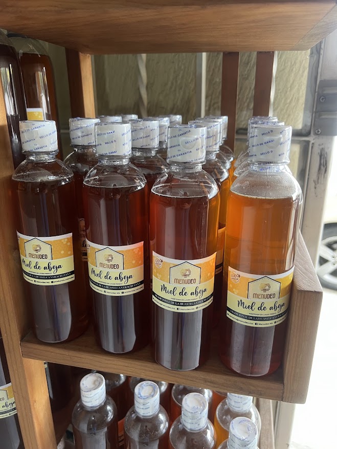 El proceso de producción de miel comienza cuando las abejas forrajeras salen de la colmena en busca de flores ricas en néctar. Una vez recolectado, el néctar es almacenado en un órgano especial llamado buche, donde se mezcla con enzimas que inician la transformación química. Una vez de regreso a la colmena, la miel pasa a ser depositada en celulitas de cera, donde continuarán el proceso de evaporación, reduciendo el contenido de agua hasta alcanzar la textura y viscosidad características.